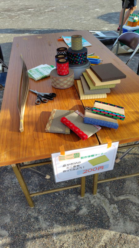 食べ物やおもちゃの販売が並ぶ中での参加だったため、お客さまが来てくださるか少し不安でしたが、子どもから大人までミニ畳づくりを体験していただけました。ご参加いただいた皆さま、誠にありがとうございました。