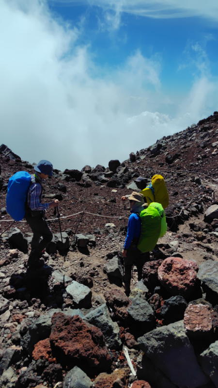 スタートして14時間弱で富士山頂まで到着!富士登山が終わると、モチロン始まるのは富士下山です。